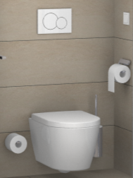 Het toilet dat in deze badkamer geplaatst is, is afkomstig van Villeroy & Boch, en is een toilet pack. Dit betekent dat het toilet en de zitting bij elkaar in een doos zitten. Deze toilet is afkomstig uit de serie Subway 3.0. Hierboven is een drukplaat geplaatst van Geberit, uit de serie Sigma 30.