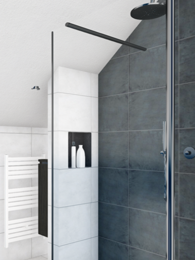Achter het muurtje van de douche, waar ook de half hoge kast van Dansani hangt, is nog een elektrische verwarming van Vasco gemonteerd. Deze heeft de afmetingen van 50 x 91,6 cm, en hangt hier in de kleur Wit. Deze radiator is voldoende om de volledige ruimte op temperatuur te brengen.
